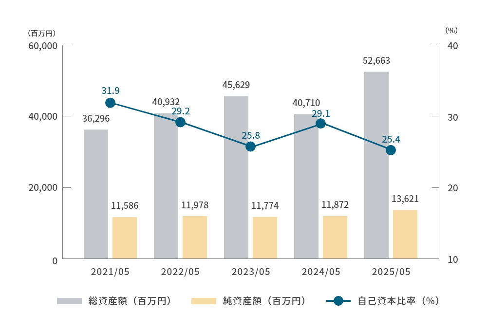| 総資産額(百万円) | 36,296 | 40,932 | 45,629 | 40,710 | 52,663 |