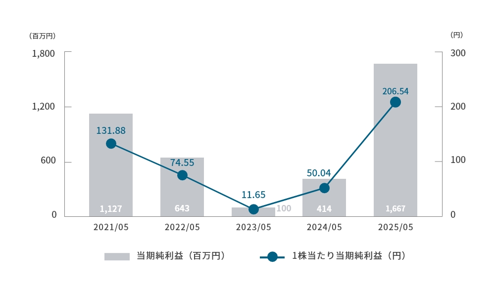 | 当期純利益(百万円) | 1,127 | 643 | 100 | 414 | 1,667 |