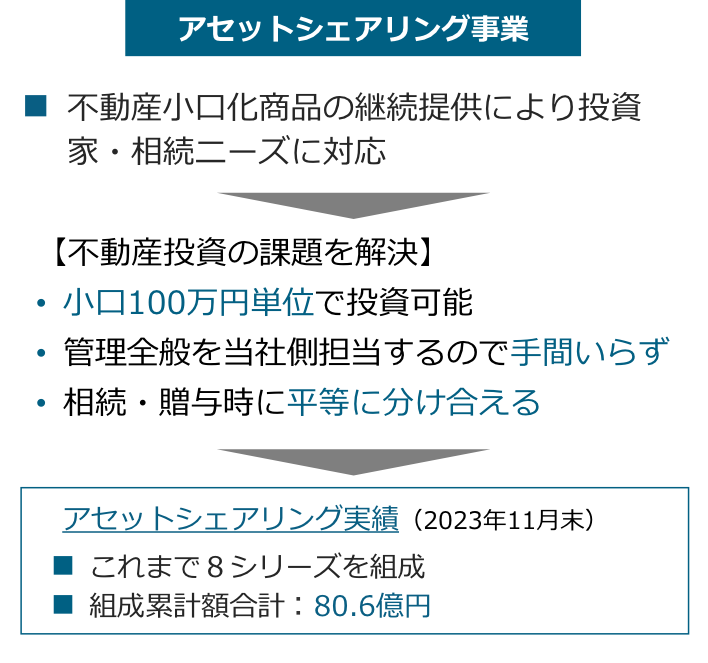 ソリューション事業分野は収益ビル、京都町家物件の売却により売上高は27.8億円(前年同期比59.7%増)となり、営業利益は5.4億円(前年同期比270.7%増)に。
